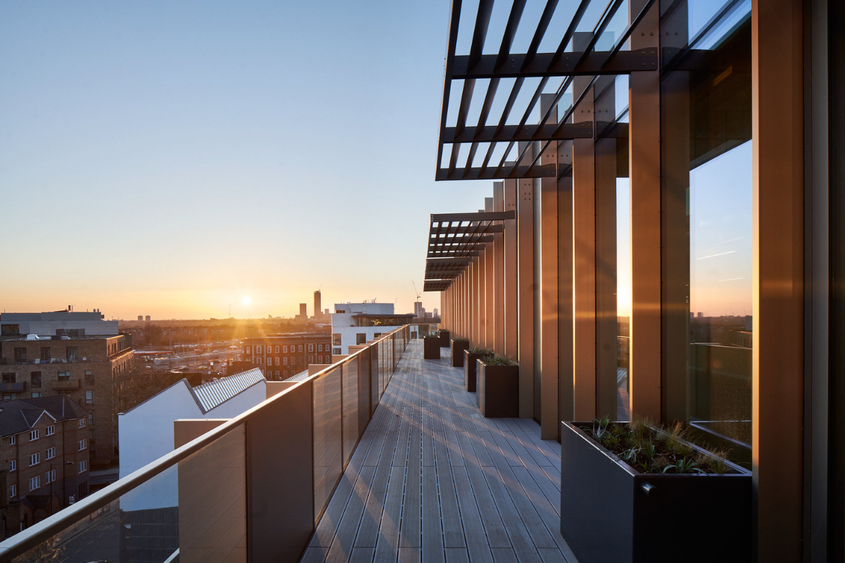 The Gramophone Works, which won the New London Awards 2021 Environmental Prize, is a forward-thinking commercial office building that supports green construction technology. Benefitting from a great quantity of outdoor amenity thanks to spacious terraces covered with Hyperion composite decking.